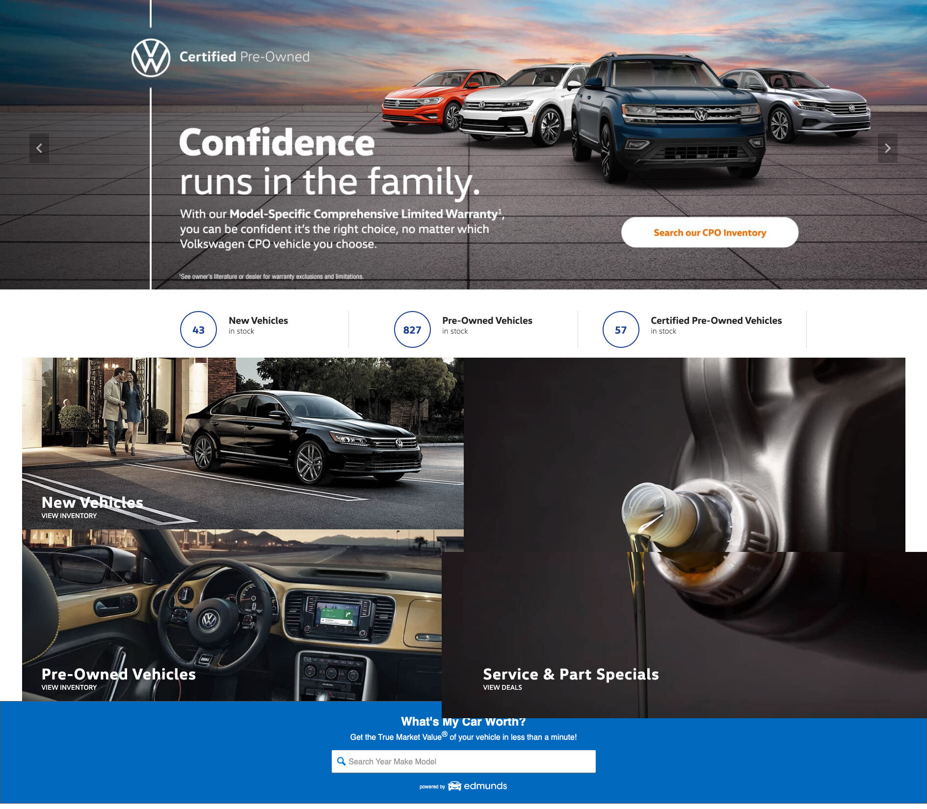 Searching for a new vehicle can be stressful. Our certified dealership works hard to ensure processes are smooth and our customers feel comfortable throughout the whole process. Our team can help you find the vehicle that fits your lifestyle best and will guide you through the purchase process. Once you decide on a vehicle, we will help you find the right parts and accessories to ensure you enjoy your ride. All parts and accessories are approved or made by Volkswagen, meaning whatever product you purchase will fit and perform exactly as Volkswagen intended.
